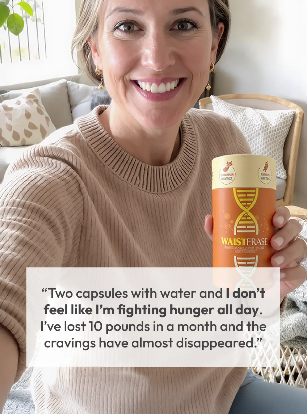 After 6 weeks, I’m down 14 pounds and my cravings have basically vanished. WaistErase gave me control back without making me feel restricted or weird.