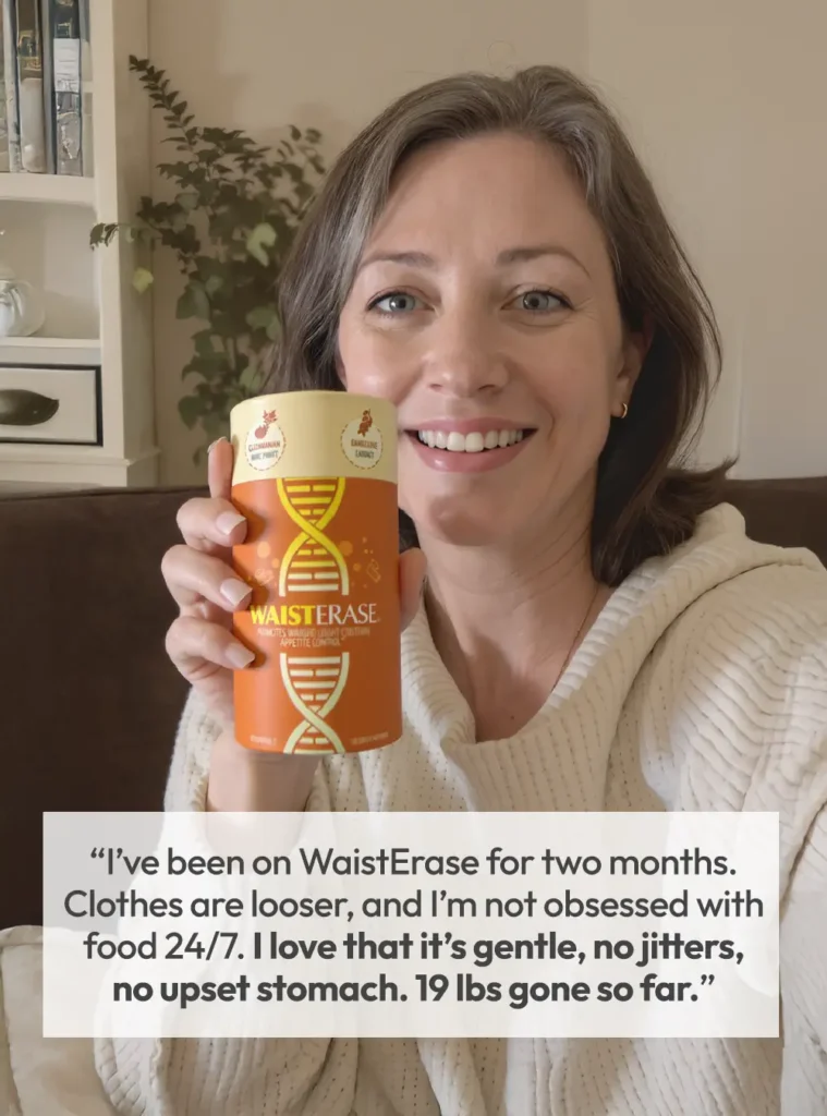 I’ve been on WaistErase for two months. Clothes are looser, and I’m not obsessed with food 24/7. I love that it’s gentle, no jitters, no upset stomach. 19 lbs gone so far.